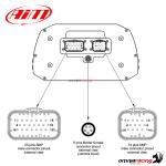 Display extra large TFT 7" ad alto contrasto (1.100 lumen), 8 allarmi LED RGB configurabili, 10 shift light LED RGB configurabili, 2 connettori AMP + 1 connettore Binder, 3 connessioni CAN, connessione a più di 1.000 protocolli ECU del mercato, piattaforma inerziale, 8 canali analogici configurabili, 4 canali velocità digitali, 1 canale RPM, 2 uscite digitali, canali matematici completamente configurabili, IP65.