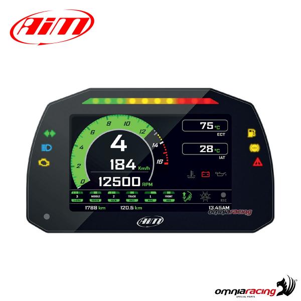 l'AIM MXK10 è un dash logger dotato di un largo display compatto TFT da 5 pollici ad alto contrasto, erede naturale del modello MXS, concepito per acquisire e visualizzare i dati provenienti dalla centralina elettronica di moto ed auto. Dotato di accelerometro e giroscopio d'alta precisione totalmente integrati, nel kit  è compreso anche un modulo gps. L'MXK10 è espandibile con 8 moduli aggiuntivi (Acquistabili separatamente)