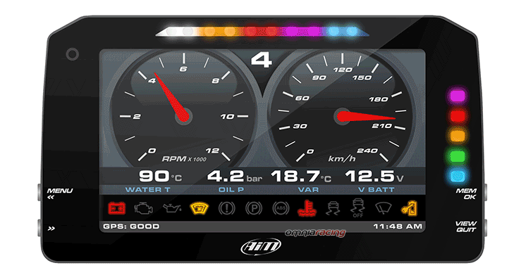 L'MXP di AIM è di dimensioni molto simili a quelle del modello MXS 1.2 ma con un display più grande di circa il 50%. Provvisto di luci per indicazione cambio marcia integrate ed allarmi in più colori totalmente configurabili con Drag&Drop. Il dash logger MXP è dotato di connettività WI-FI ed USB, di un modulo GPS unito ad una piattaforma inerziale che lo rende un prodotto estremamente completo.