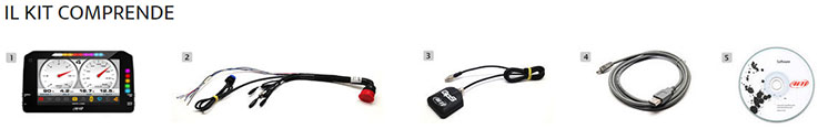 • MXP, Modulo GPS con cavo, cavo USB, cablaggio standard 37 pin, software Race Studio 3.