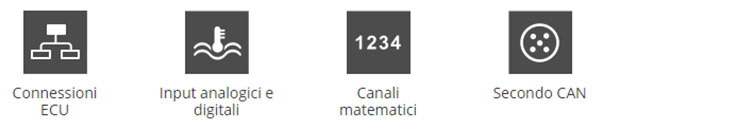 • Espansioni via CAN: GPS Module, Channel Expansion, Thermocouples expansions, Lambda Controller, SmartyCam HD