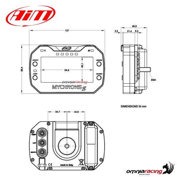 • MyChron5S, caricabatteria con cavo, cavo RPM, 1 sensore di temperatura con prolunga, CD Race Studio 3. Optional ricevitore ottico/magnetico