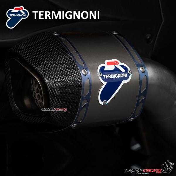 I terminali di scarico e le marmitte complete Termignoni sono realizzate con i migliori materiali disponobili sul mercato. Nel rispetto dei canoni che ogni terminale deve avere in termini di leggerezza e prestazioni utilizzando carbonio di altissima finitura, Titanio, metallo leggero e prestazionale, ed acciao di altissima qualità, semplice o con lavorazione Poppy (Effetto carbon look). Ogni scarico porta vantaggi ed incrementi in termini di prestazioni rispetto allo scarico originale montato dalla moto o dallo scooter. L'incremento di potenza in cavalli degli scarichi Termignoni è tra i più alti paragonato ad altri produttori. Il "sound" è qualcosa che DOVETE sentire.