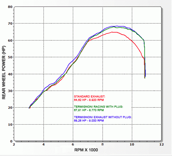 In termini di peso il completo Termignoni offre un guadagno di quasi 3,6 kg, rispetto all’impianto originale.