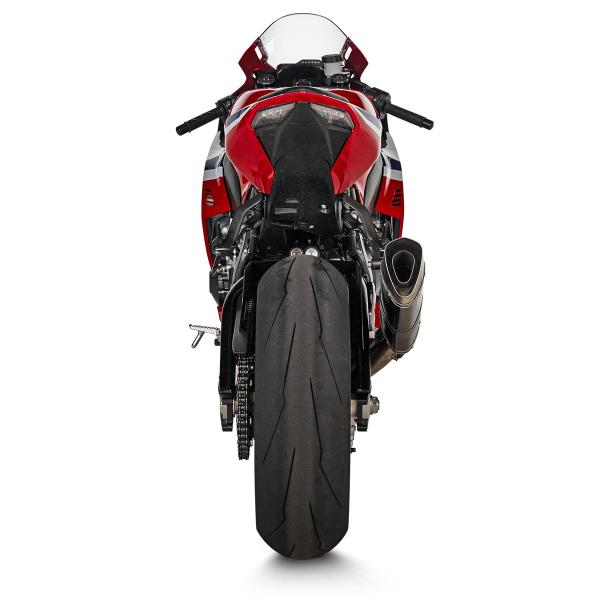 Il sistema di scarico Akrapovic è in grado di offrire guadagni di potenza di 1,1 kW (1,5 CV) a 3750 giri/min e aumenti di coppia di 3,9 Nm a 3350 giri/min rispetto alla Honda CBR1000RR-R con impianto di serie. Il sound degli scarichi Akrapovic è unico e riconoscibile, grazie alla tecnologia avanzata del silenziatore e di tutti i componenti.