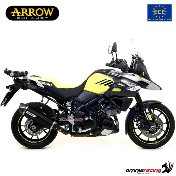 Terminale di scarico Arrow Maxi Race Tech omologato in alluminio nero per Suzuki Vstrom 2014>2020