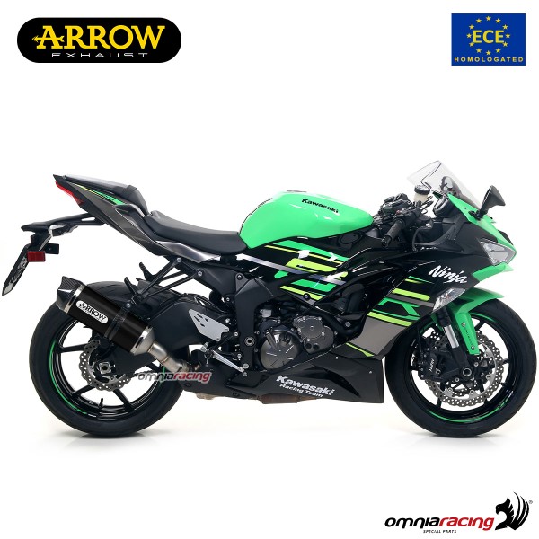 Terminale di scarico Arrow Race Tech omologato in alluminio nero per Kawasaki ZX6R 636 2019>2020