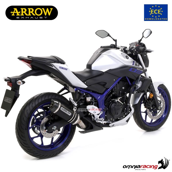 Terminale di scarico Arrow Thunder omologato in alluminio nero per Yamaha R3 2015>2018