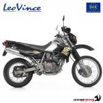 LeoVince X3 ENDURO è realizzatocon acciaio inox AISI 304 e saldati con tecnologia TIG per garantire robustezza e durata nel tempo. Il silenziatore, rivestito in alluminio, presenta una struttura interna semi-diretta a camere ed è fissato al telaio mediante fascette in carbonio.