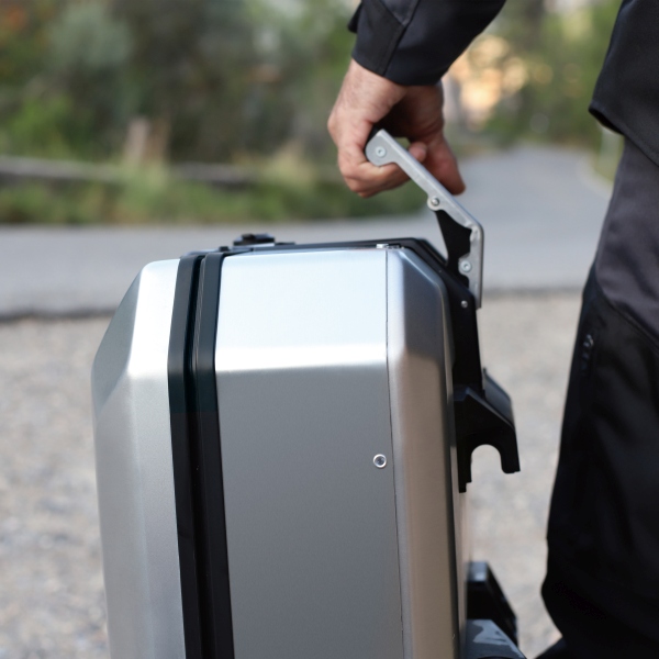 La SHAD TR47R TERRA è una valigia laterale Sinistra progettata e realizzata al 100% a Barcellona, con una capacità fino a due caschi (modulare + jet) o un casco Trail. Il suo design aerodinamico e integrato riduce l'impatto visivo sulla moto, garantendo una perfetta armonia tra funzionalità e stile.